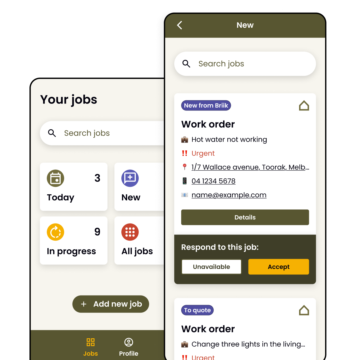 Your Briick profile is your digital business card, live from the moment you join. It promotes your skills, reviews, and compliance status to real property managers who value reliability and quality.